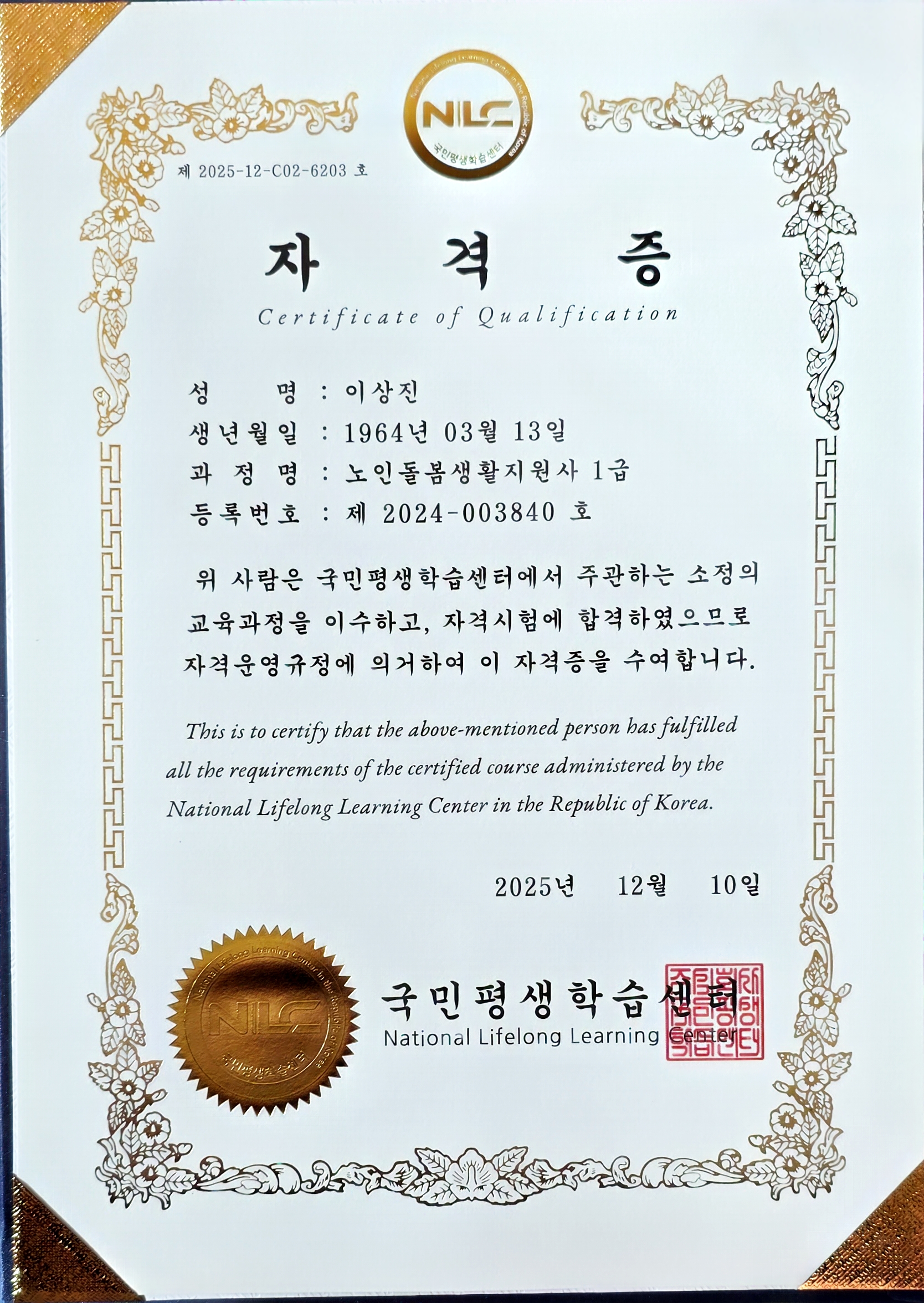 자격증을 받고 보람있고 든든하였습니다.
