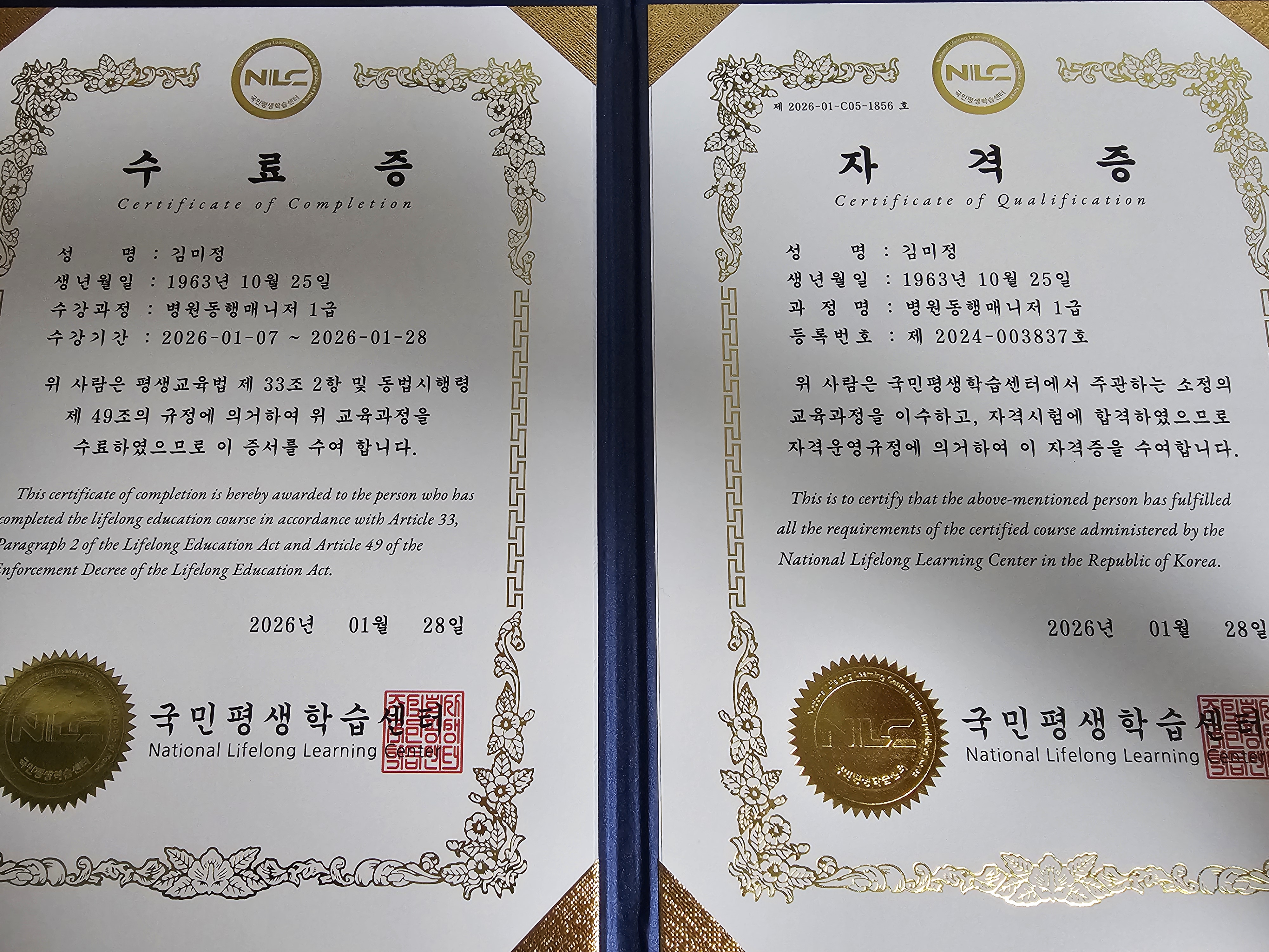 우연히 인스타그램으로 알게된 병원동행매니저 생소한 이름이지만 생각해보니 지금 이 시대에 정말 필요한 직업이란 생각으로 시작하였는데 한강좌씩 들을때마다 부모님이 생긱나고 또 자녀를 키울때 이런 시스템이 있었으면 정말 좋았겠다는 생각이 더 들었습니다.용기내어 자격증을 시도했으니 이 자격증이 꼭 저의 새로운 시작이 되길 바라며 누군가에게 도움이 되는 삶을 희망해 봅니다~~~