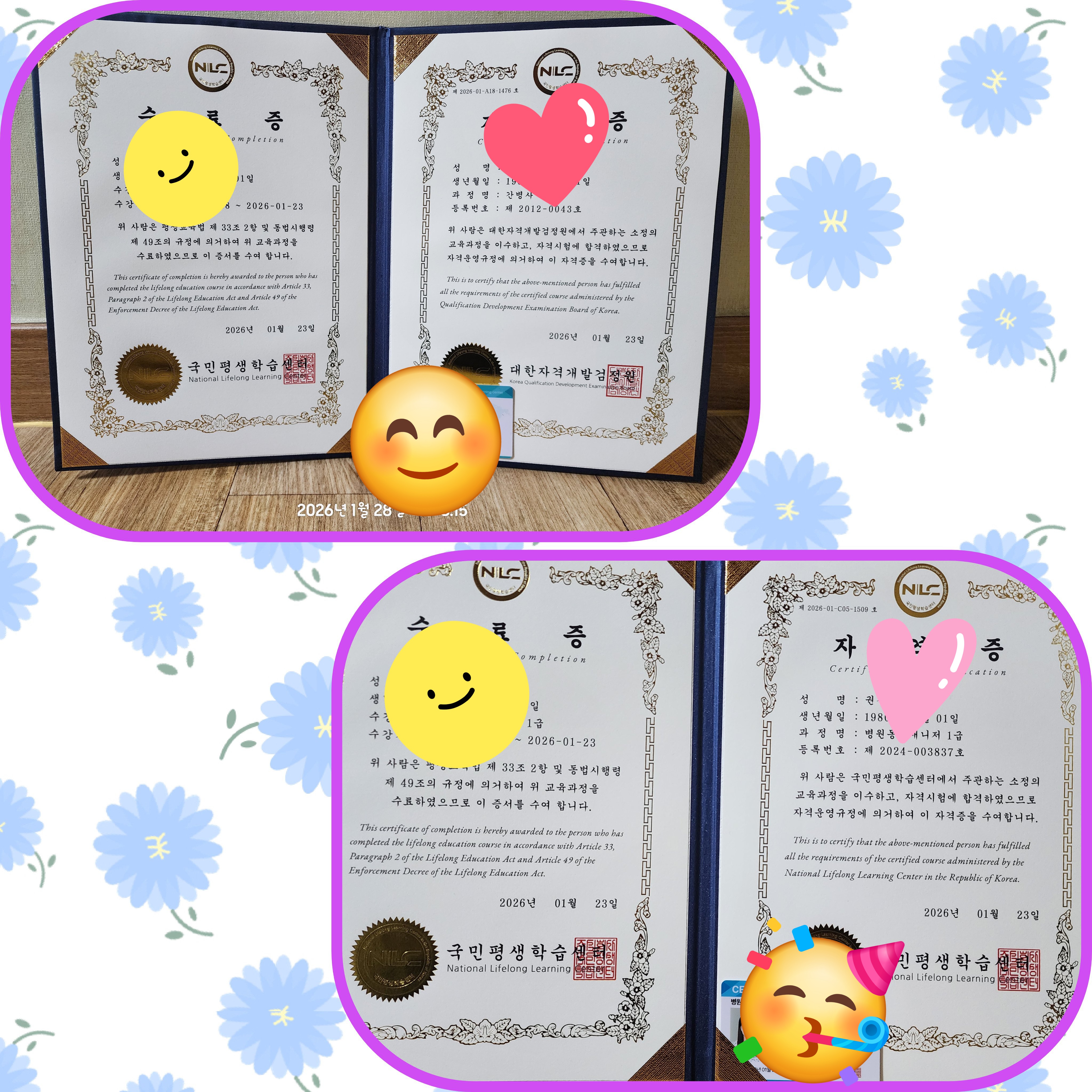 노인돌봄 생활지원사 합격은 제게 새로운 시도이자 도전을 시작할 수 있는 기회가 되었습니다. 돌봄 경험을 사회에 나누고 싶다는 마음으로 교육과정을 이수하며 어르신 지원의 기본과 중요성을 배웠습니다. 이번 합격을 통해 내가 원하는 일을 실천할 수 있는 발판을 마련했다고 생각합니다. 앞으로 공감과 배려를 바탕으로 작은 도움도 의미 있게 전달하는 생활지원사가 되고 싶고, 그 ...